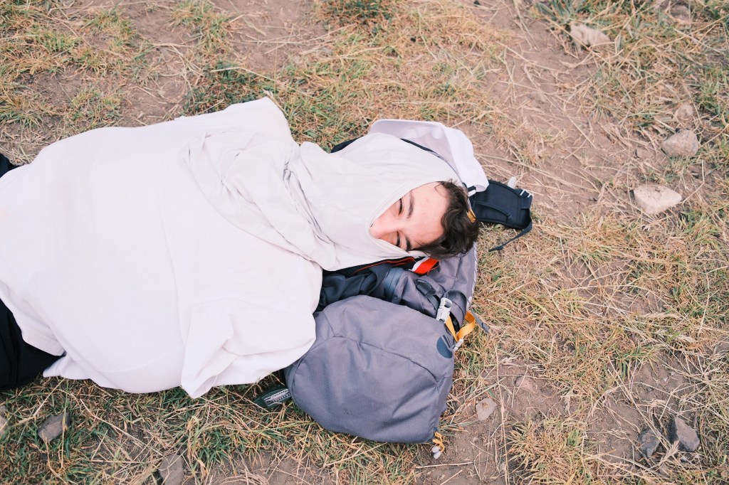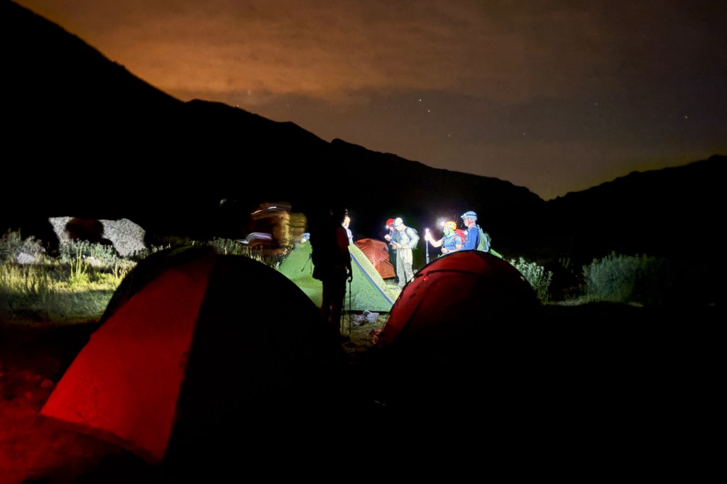 None of us were prepared. At any given moment, there were 10–15 of them buzzing around your face, pushing you to the edge of madness. I’m guessing it was a mix of the mild temperatures, the still air, and the abundance of mule shit in the area — whatever the reason, it was relentless. With no repellant and no long-sleeved gear, the only thing we could do was cover up as best we could and wait for our tents. So please, learn from our mistake: bring mosquito repellant, wear long sleeves, and cover up as soon as you get there.