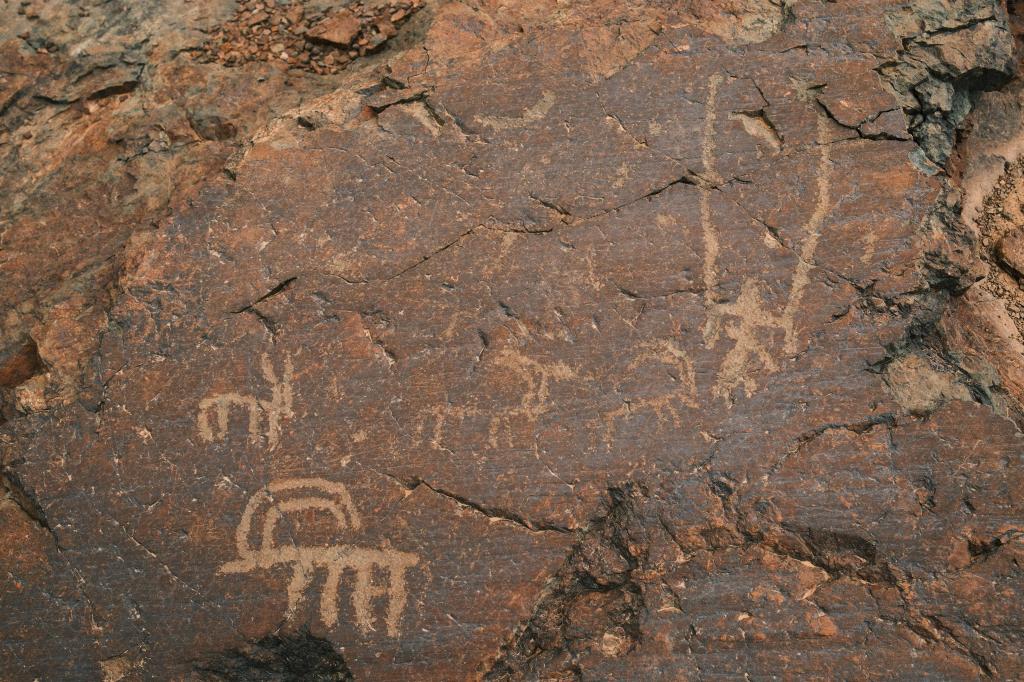 A little further along, the driver pulled over and pointed us toward a general area. These carvings weren’t marked on any maps or protected in any way. We explored on foot for a while, and finally, one of us spotted a rock with a goat figure on it and we knew we’d found them.